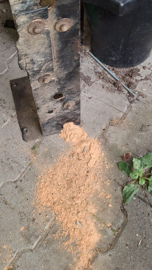 Rostanfällige Stelle unter der Befestigung der Traverse