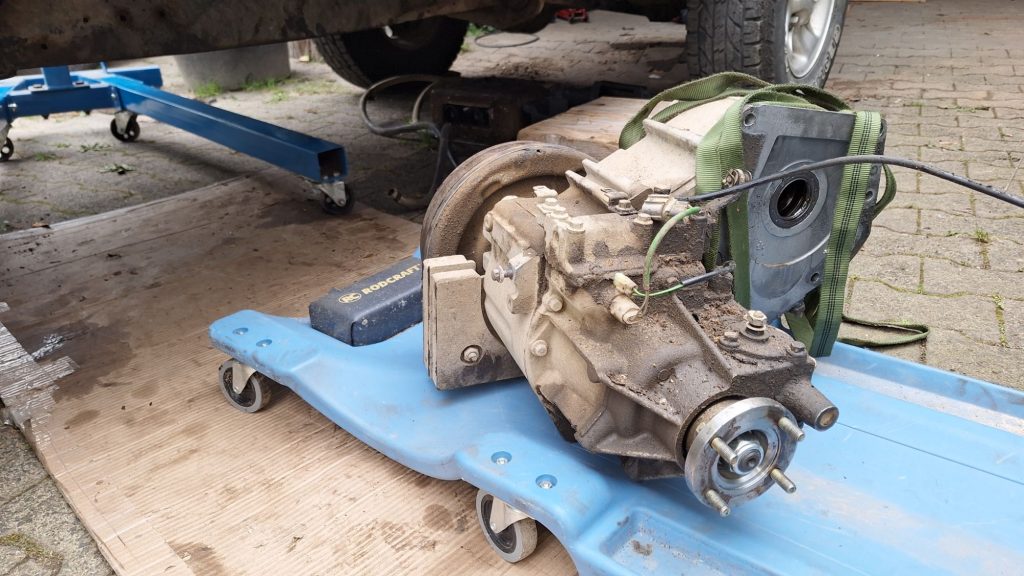 Der weitere Ausbau ging einigermaßen problemfrei vonstatten. Sämtliche Gehäuseschrauben ließen sich gut lösen und als erstes kam das Verteilergetriebe raus.