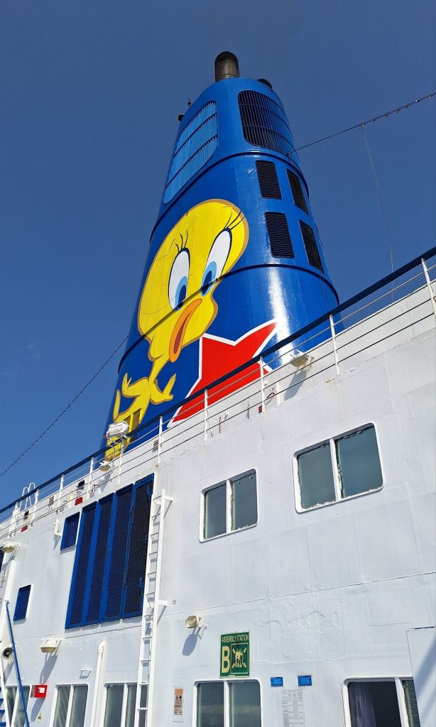Ich kam etwas mehr als eine Stunde vor Abfahrt der Fähre am Hafen an, aber das Schiff war noch nicht da. Das kam erst 45min vor der geplanten Abfahrt an. Ob das Aus- und Beladen in so kurzer Zeit zu schaffen ist?