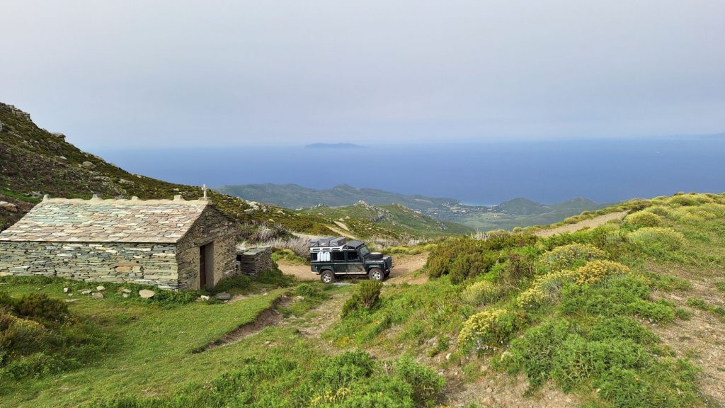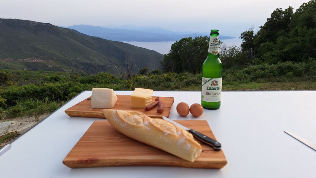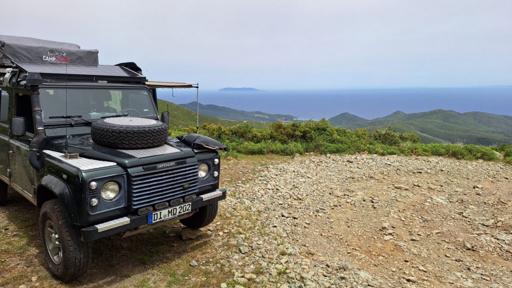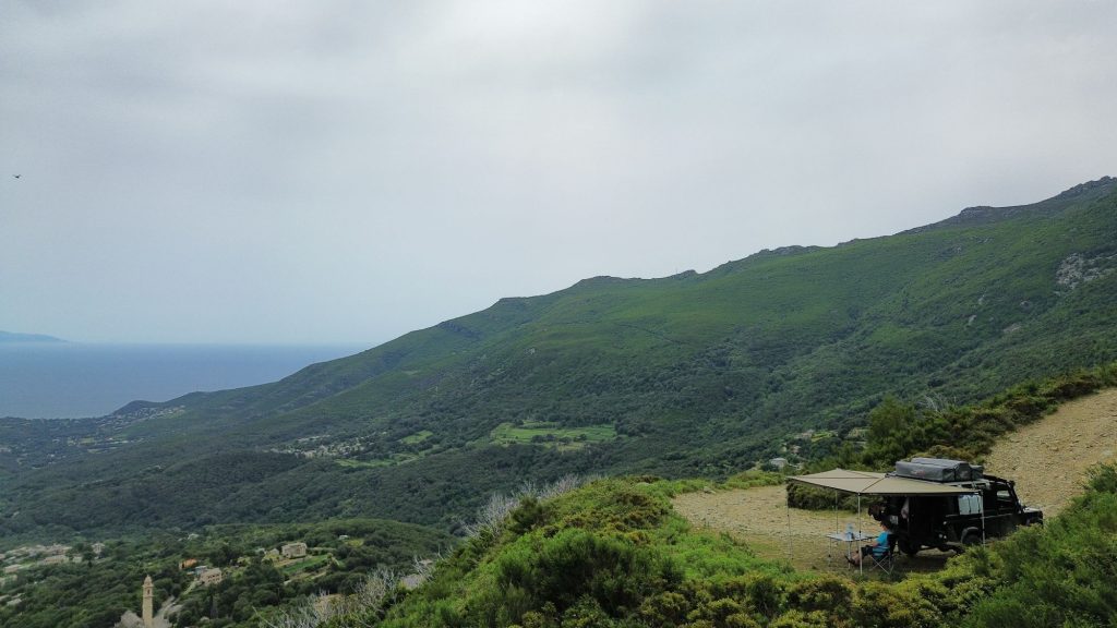 Leider konnte ich dort keine Hängematte aufspannen, da ein geeigneter Fixpunkt fehlte. So musste ich meinen Mittagsschlaf im Auto halten, aber das war auch ok. Irgendwann machte ich mir Gedanken, wo ich denn die Nacht verbringen werde. Auf Korsika ist das Wildcampen verboten, und von dem Platz an dem ich stand war ich in Sichtweite einger Häuser. Daraufhin machte ich mich wieder fahrfertig und weiter ging es bergan Richtung der Passhöhe.