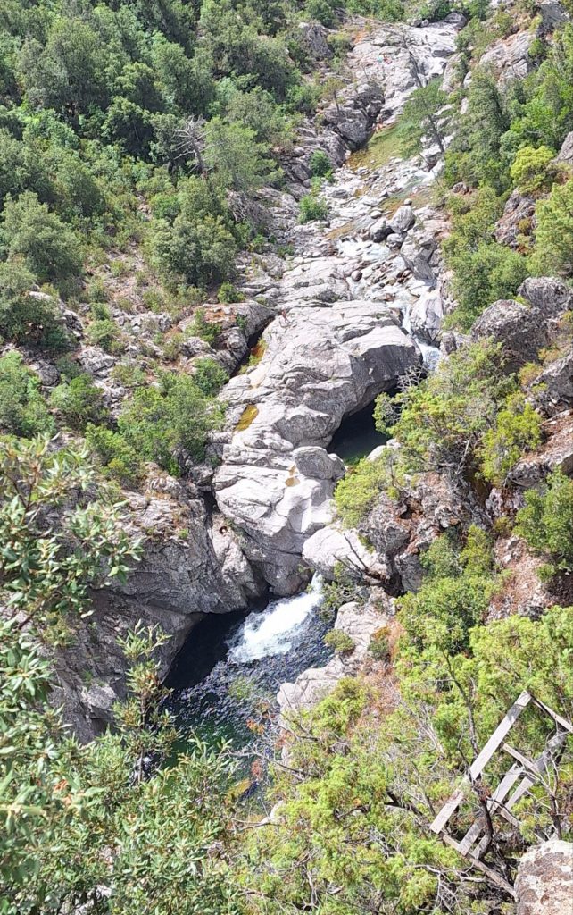 Gestern bin ich ein bisschen weiter gefahren, um zu einer Stelle zu kommen, die ich von meinem letzten Korsikaurlaub her kannte. Die Stelle heißt Y-Baum oder Stimmgabelbaum. Er steht zwar noch, aber er ist abgestorben durch ein Unwetter vor ein paar Jahren.