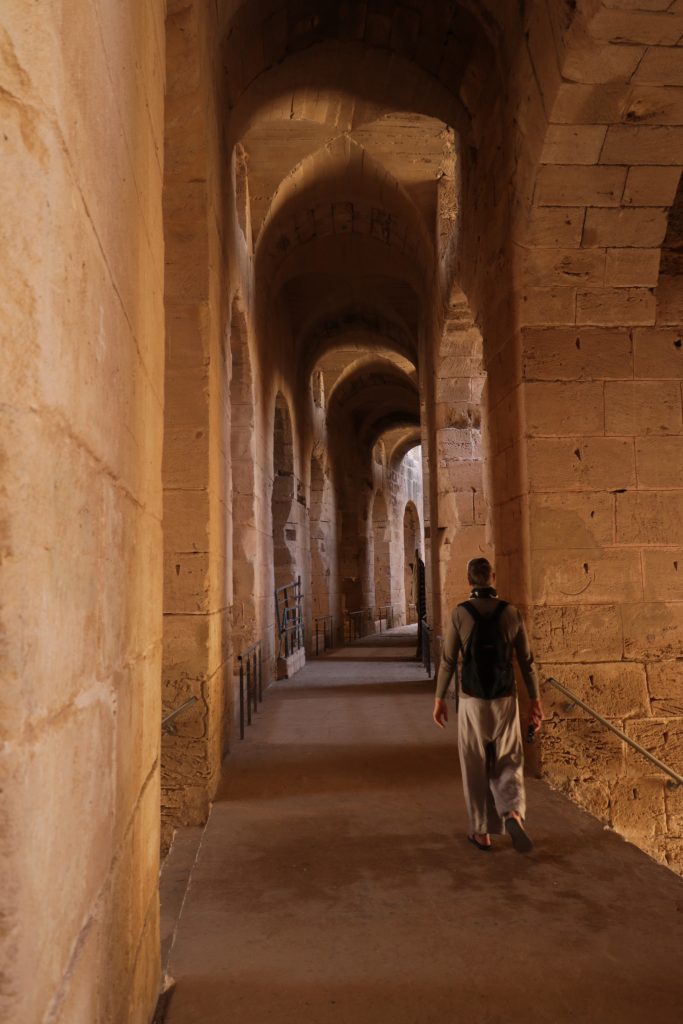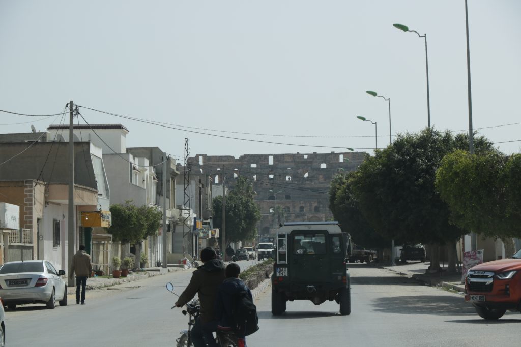 In El Djem angekommen waren wir sehr überrascht, denn die Stadt und die Menschen machten einen recht entspannten Eindruck, auch vor dem Kolosseum wurden wir nicht von irgendwelchen potentiellen Führern angequatscht. Das Kolosseum wird durch den Staat verwaltet und auch die Polizei ist anwesend. Vermutlich hält dies die ganzen Führer fern.