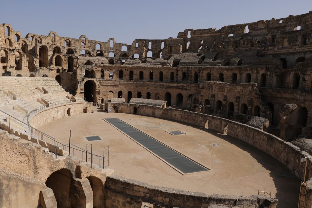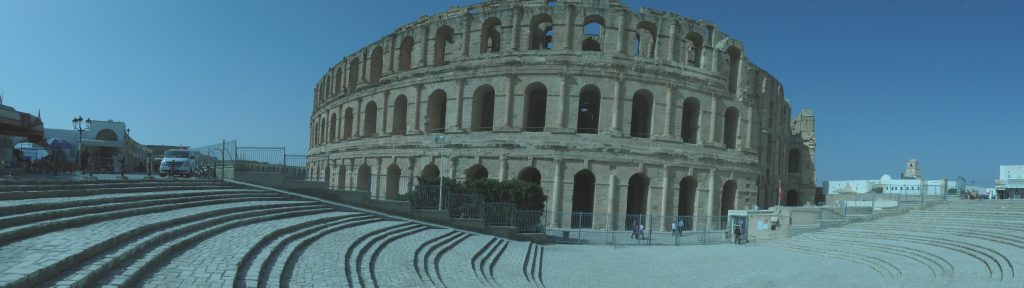 Nachdem wir uns aus der Stadt herausgewuselt hatten, fuhren wir nach El Djem, um uns dort das zweitgrößte Kolosseum (nach dem in Rom) anzuschauen. Dies bedeutete zwar einen kleinen Umweg, aber wir haben Donnerstag und die Fähre ist erst für Sonntag gebucht.