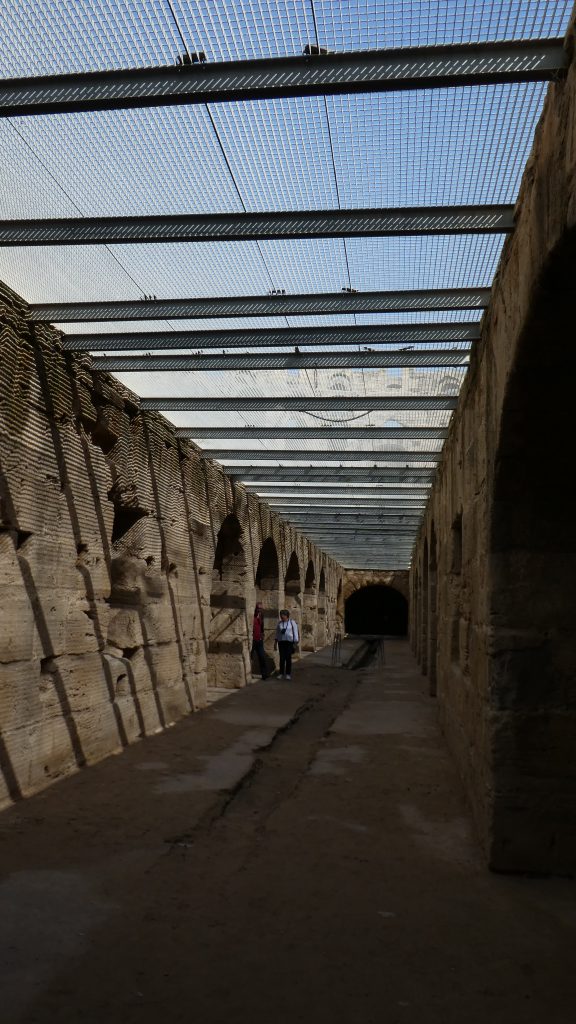 Unter der Arena geht ein Gang von einem Ende bis zum anderen entlang. Hier sind viele Kavernen zu finden, in denen wohl mal die Tiere gehalten wurden.