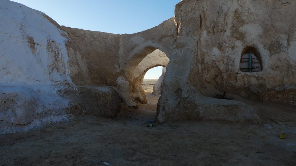 Wir gingen also los auf die Kulissen zu. Mir war bekannt, dass sämtliche nur aus mit Lehm verputztem Holzgestängen bestanden. Aber trotz dass dies ein Ort von hohem touristischem Interesse ist, schaffen es die Tunesier nicht, diesen Ort vom Müll frei zu halten. Nach einem sehr kurzen Rundgang gingen wir schnell zurück zu den Autos und fuhren davon.