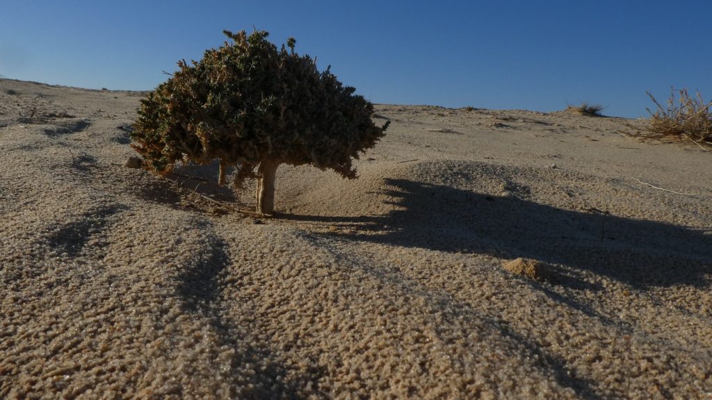 Heute früh war ich kurz vor Sonnenaufgang wach, kurz draußen vorm Dachzelt, und da habe ich schon ein Auto auf uns zufahren sehen. Ich wollte noch Ruhe haben, bin ins Dachzelt zurückgeklettert. Aber das hat den Händler nicht interessiert, er hielt an, grüßte mit einem freundlichen Bon Jour und bot Sandrosen und sonstige Souveniers feil. Glücklicherweise sind die Händler nicht zu penetrant und verstehen, wenn man kein Interesse hat.