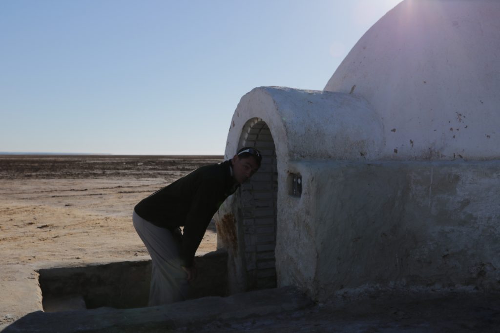 Wir fuhren noch zu einem zweiten Drehort in der Nähe, der allerdings nur eine einzelne Kuppel mitten auf dem Salzsee ist. Eigentlich wollte ich am Abend hier ein Foto machen, das einer Szene aus dem Film ähnelt. Aber allein die Piste hierher ist so dermaßen ausgefahren, dass sich zum Abend hin hier sicher auch die Touris stapeln. Also ging es weiter.
