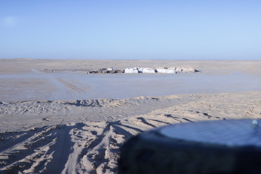 Kurz darauf war auch Thorsten wach und wir machten uns fahrfertig. Wenig später standen wir dann auf der letzten Düne vor dem Star Wars Drehort von Mos Eisley, dem Weltraumhafen auf dem Wüstenplanet Tatooine.