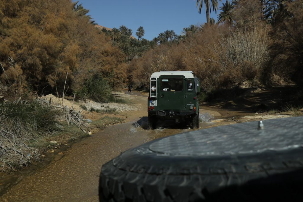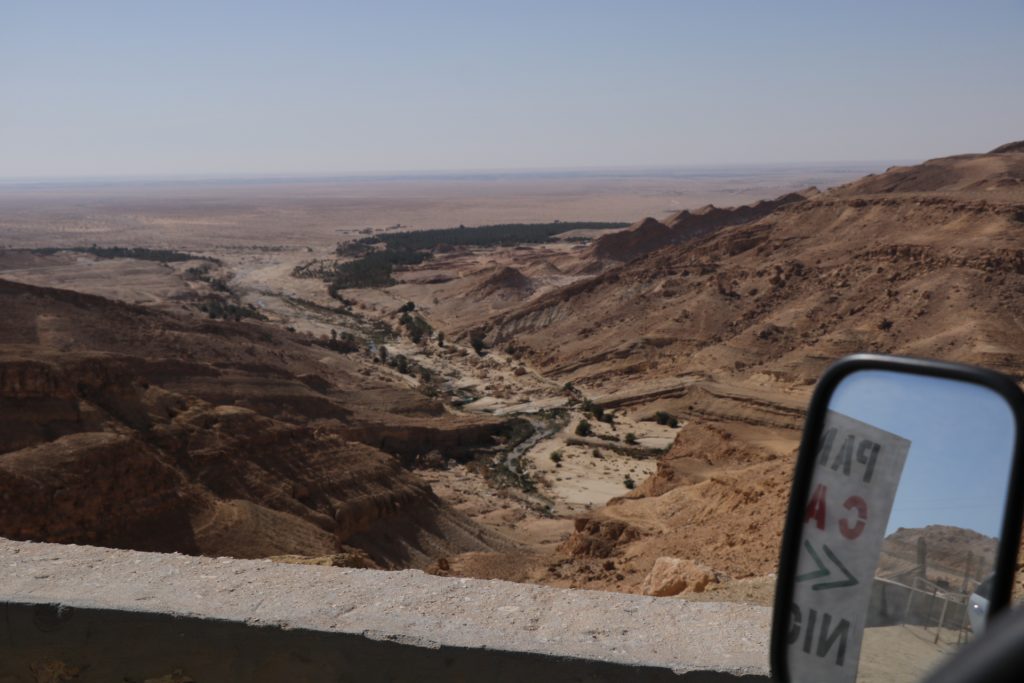 Weiter ging es Richtung Tamersa, mit dem Versprechen, eine grandiose Schlucht samt Wasserfall bewundern zu dürfen. Wir wollten aber vorher eine Pause machen und Mittag essen, was wir auch taten. Wärend wir leckes lokal gebackenes Brot und allerlei Käse, Soßen und Dipps verspeisten, gesellte sich ein freundlicher Mensch zu uns, welcher überraschend gut deutsch sprach. Wir unterhielten uns über die Umgebung von Tamerza und in der Offroad Szene bekannte Leute wie Thomas Trossmann www.wuestenfahrer.com, welchen er persönlich kennt.