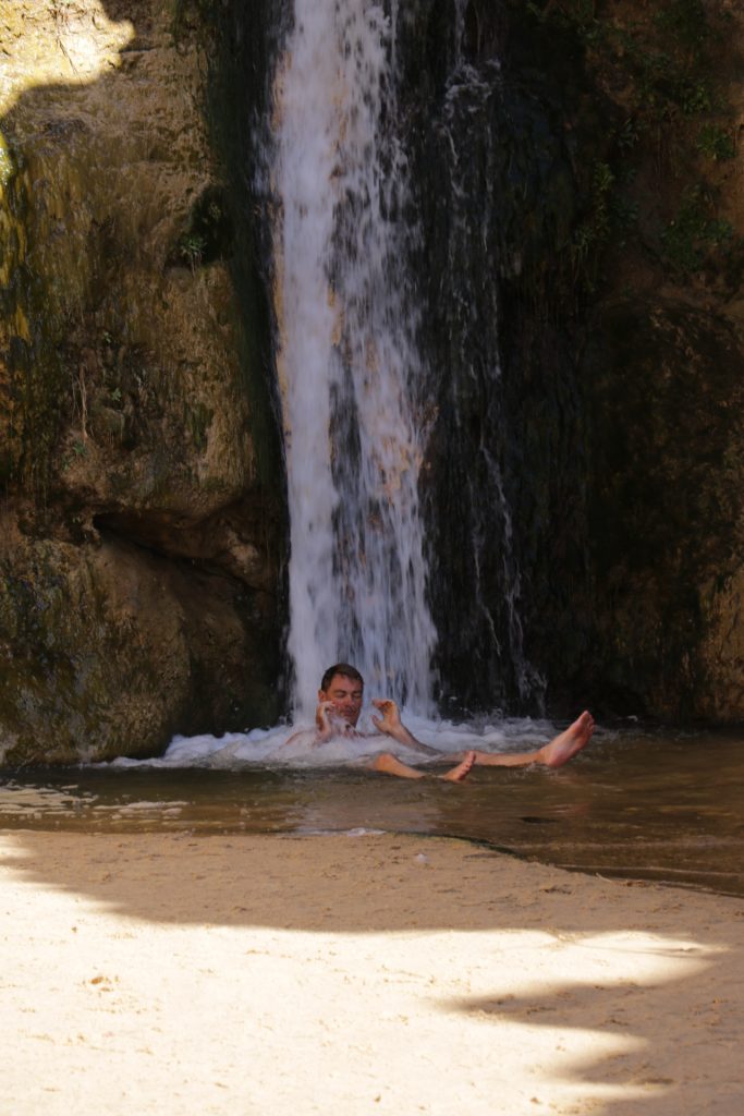 Klar, es war beeindruckend und er hat uns ca eine Stunde alles Mögliche erzählt, was wir sonst nicht erfahren hätten aber das Abenteuergefühl war weg. Sich eine ganz neue Landschaft selbst mit den Fahrzeugen zu erarbeiten ist ein weit erfüllenderes Gefühl, als einen Führer zu haben, der nätürlich als hier geborener alle Details in- und auswendig weiß. Die Dusche unter dem Wasserfall habe ich mir dann nicht nehmen lassen, auch wenn auf mich gewartet werden musste.