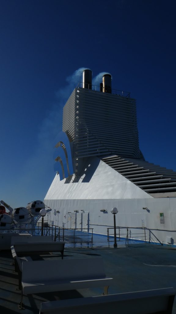Die Fährfahrt war im Gegensatz zur Hinfahrt recht ruhig. Als wir die Landabdeckung von Tunesien verlassen hatten, wurde es schon recht schaukelig, so wie es in der Windvorhersage erwähnt war. Thorsten schlief recht schnell ein, aber ich tat mir schwer, den Weg ins Traumland zu finden.