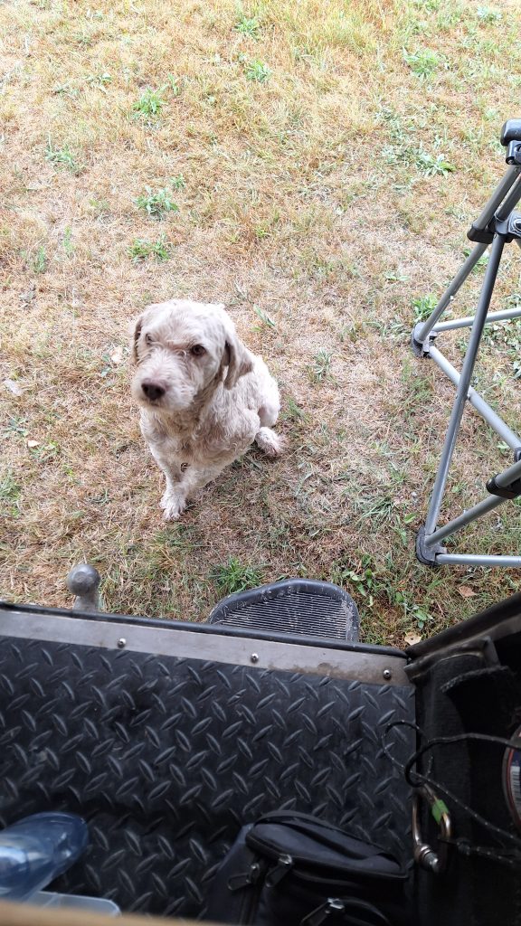 Heute Morgen war der 4beinige Besuch noch immer da, er hat in der Nacht immer mal wieder gebellt und hat vermutlich unterm Auto geschlafen.