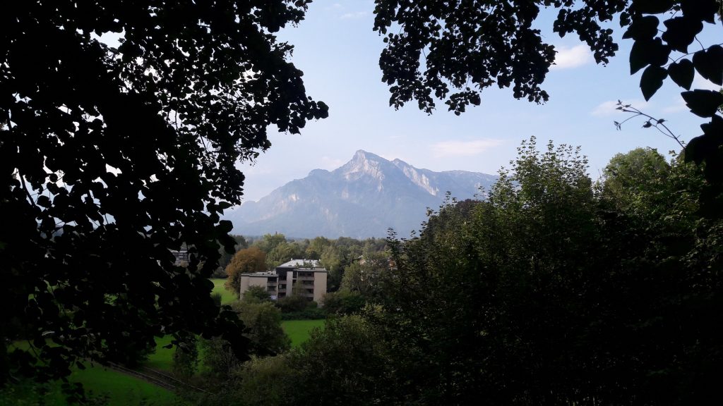 Kurz nach der Wasserstelle Löwenbrunnen kann man schon den Untersberg sehen. Da gehts nachher hoch.