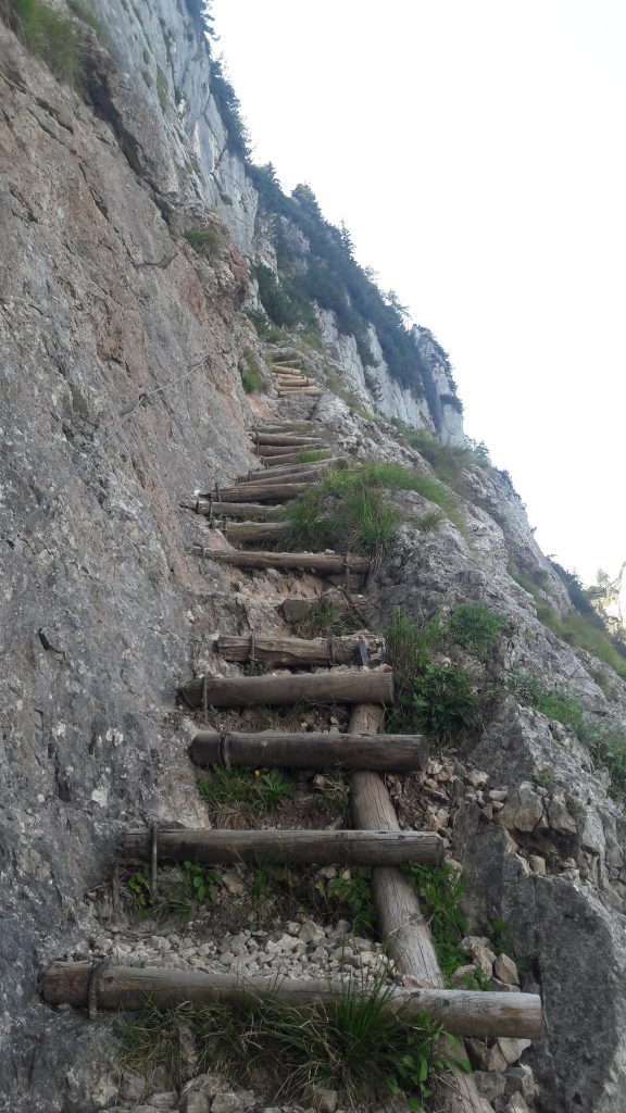 Teils stark ausgesetzt und weit abfallend zieht der Weg seine Bahn weiter bergan. Als die teilweise schier endlosen Holzleitern anfingen, merke ich meine vorbildliche und exzessive Vorbereitung (räusper…. hüstel) auf diese Wanderung.